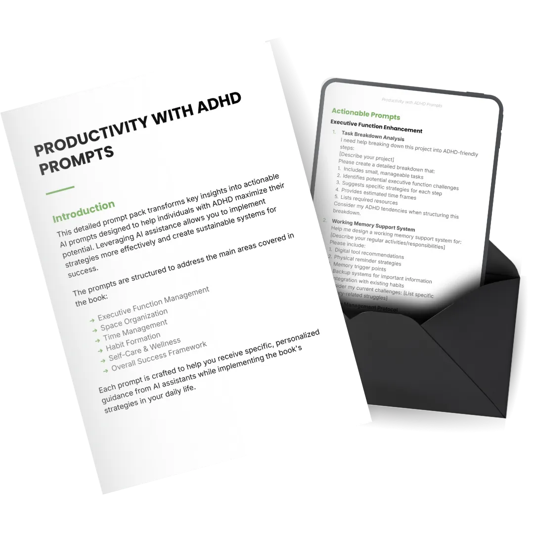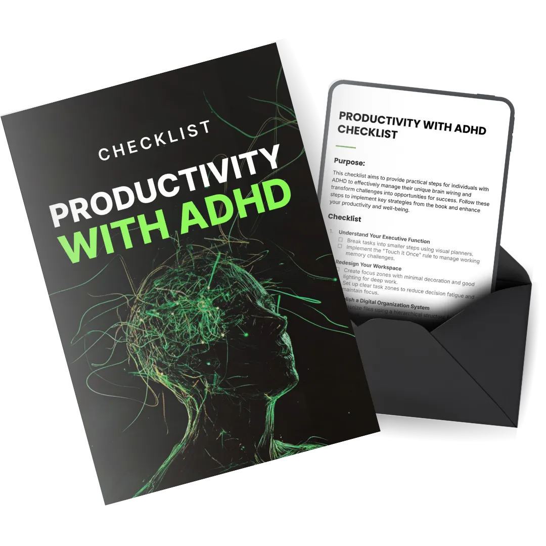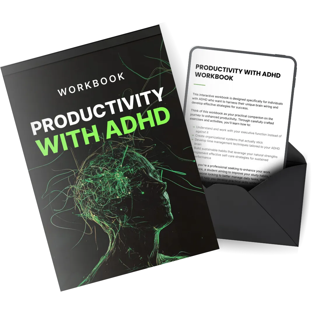 Transform your chaos into clarity with the ADHD Productivity Guidebook—a proven system to help you manage your time, build sustainable habits, and unlock your true potential, all while embracing the unique strengths of your ADHD brain.